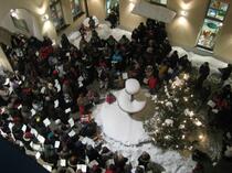 Im Brunnenhof des Rathauses werden gemeinsam bayerische Weihnachtslieder gesungen. Bei schlechtem Wetter findet das Singen im Rathausfoyer statt.